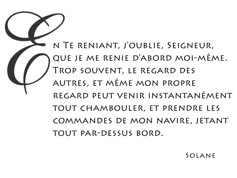 En Te reniant, j’oublie, Seigneur, que je me renie d’abord moi-même. Trop souvent, le regard des autres, et même mon propre regard peut venir instantanément tout chambouler, et prendre les commandes de mon navire, jetant tout par-dessus bord. Et amenant souvent, sans le savoir, une tempête intérieure… Plutôt que d’être le phare qui transmet Ta Lumière au cœur des tempêtes de notre monde!