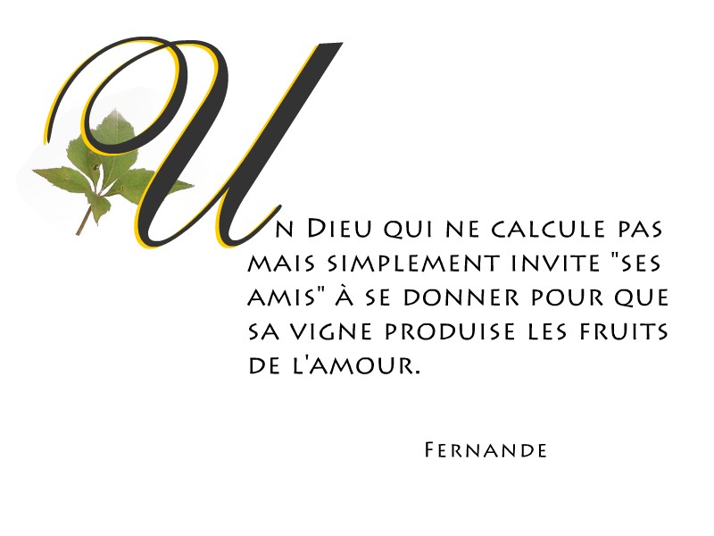 Un Dieu qui ne calcule pas mais simplement invite « ses amis » à se donner pour que sa vigne produise les fruits de l’amour.