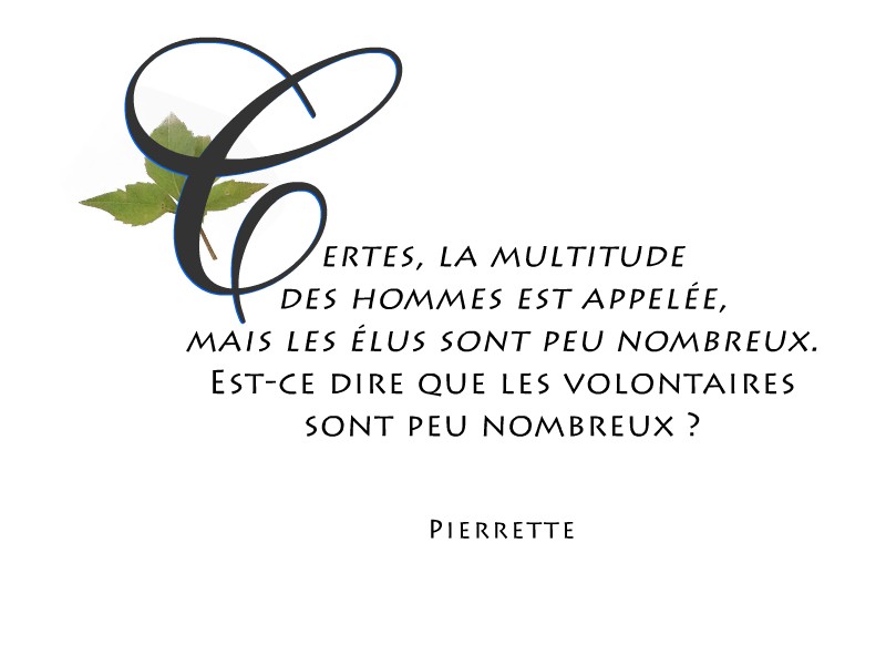 « Certes, la multitude des hommes est appelée, mais les élus sont peu nombreux. » Est-ce dire que les volontaires sont peu nombreux ?
