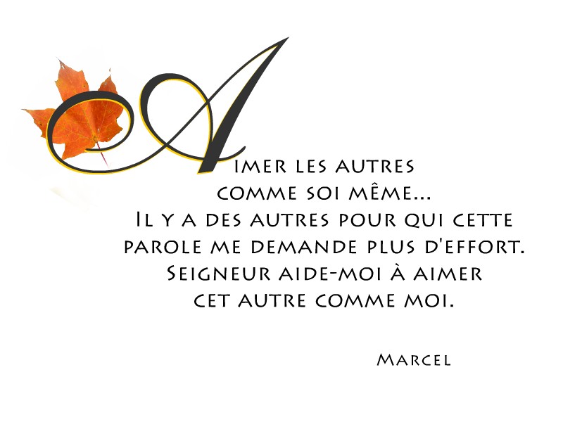 Aimer les autres comme soi même… Il y a des autres pour qui cette parole me demande plus d’effort. Seigneur aide-moi à aimer cet autre comme moi.