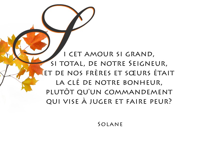 Si cet amour si grand, si total, de notre Seigneur, et de nos frères et sœurs était la clé de notre bonheur, plutôt qu’un commandement qui vise à juger et faire peur?
