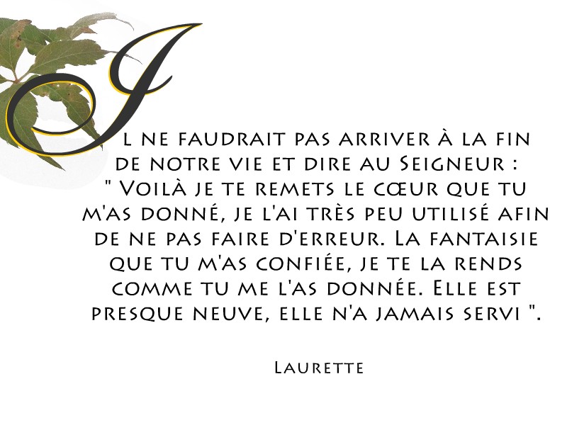 Dieu nous offre tout et il s’attend en échange que nous en faisions une bonne utilisation. Il ne veut pas qu’on ait peur de lui. Je crois qu’il préfère l’échec si la personne a agit de bonne foi, qu’à l’inertie causée par la peur. Agissons dans la confiance que Dieu est toujours là avec nous, tel un père, plutôt que de nous cacher dans nos peurs et d’aller nous coucher en attendant que ça passe!