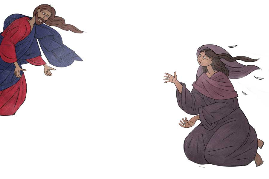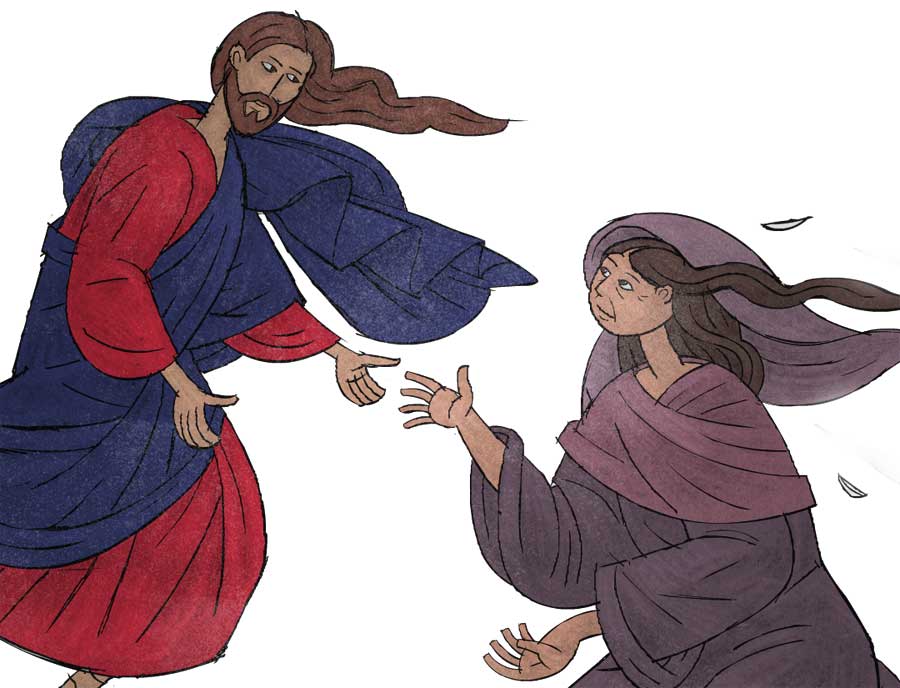 « Jésus s’approcha, la saisit par la main et la fit lever. » Pas une parole n’est prononcée.