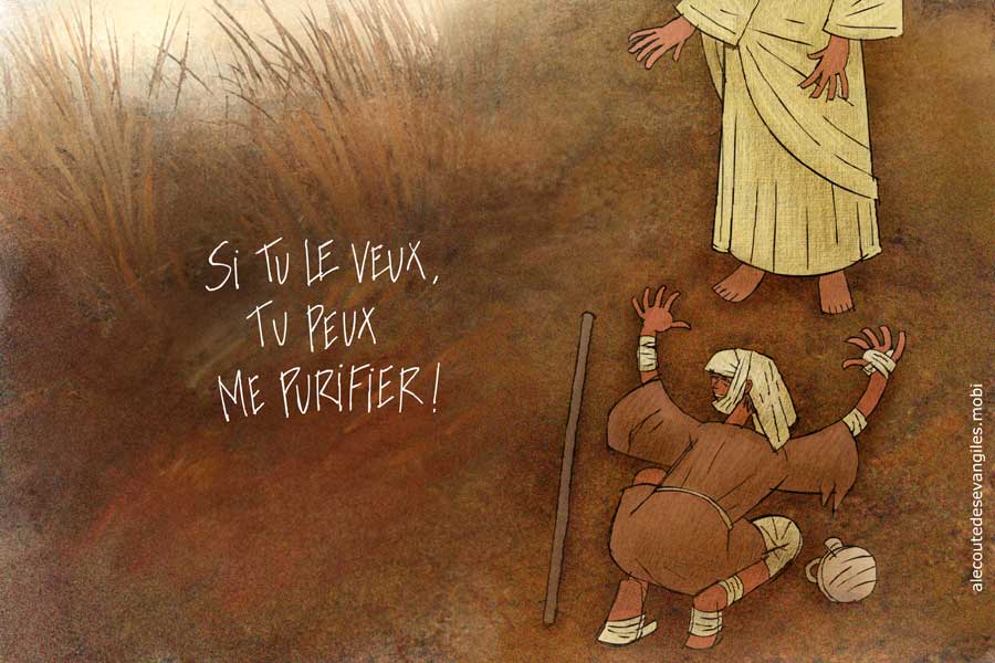Qui ne voudrait s’approcher d’une telle personne? C’est bien la grâce à demander, en tombant à genoux aux côtés de ce lépreux anonyme, de pouvoir s’adresser à lui dans les mêmes termes : « si tu le veux, tu peux me purifier ». J’aime bien cette audace qui met Jésus au défi, mais qui reconnaît en même temps sa liberté. « Si tu veux… », c’est l’attitude du mendiant conscient de dépendre de ce qui lui sera donné. Mais ce suppliant a décidé de faire une démarche, d’aller à la rencontre de celui à qui il donne pouvoir sur sa vie. Or c’est souvent le genre de décision qui coûte le plus : puis-je vraiment prendre le risque de faire entièrement confiance à Dieu au point de remettre mon présent et mon avenir entre ses mains? Pourtant, cet acte de confiance me « purifie » parce qu’il me décentre de moi-même et me fait entrer dans une relation d’amour.