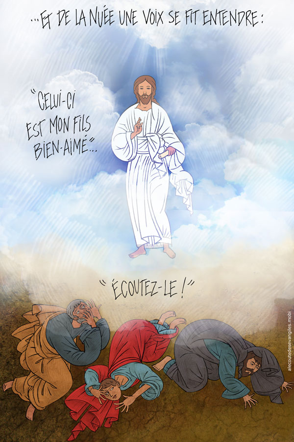 C’est un moment d’exception que les trois disciples ont vécu. Il y avait tant à voir, à entendre, à recevoir ! Au centre, Jésus, ce maître qu’ils ont décidé de suivre même s’ils le trouvent déroutant à certaines heures. Ici, il n’y a plus de doute possible, ils ont bien entendu la voix qui disait « Celui-ci est mon fils bien-aimé, écoutez-le ».