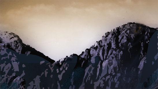 La faible lumière du jour naissant éclairait les escarpements humides et en faisait ressortir le relief.