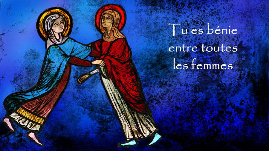 Marie ne peut contenir sa joie. Elle s’empresse de rejoindre sa cousine Élisabeth pour partager avec elle la joie du salut. Marie est celle que Dieu a choisie entre toutes les femmes pour s’incarner dans son peuple. Remplie de l’Esprit-Saint, Élisabeth nous le confirme : « Tu es bénie entre toutes les femmes, et le fruit de tes entrailles est béni. D’où m’est-il donné que la mère de mon Seigneur vienne jusqu’à moi? Heureuse celle qui a cru à l’accomplissement des paroles du Seigneur. » Quelle salutation! Quelle révélation!