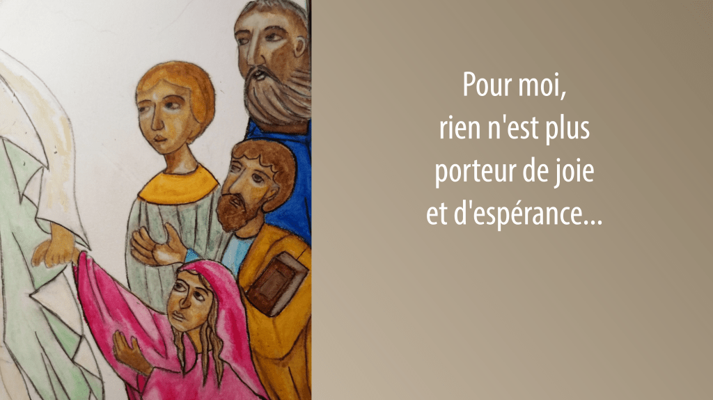 Bravo. Je suis très touchée de lire la relecture que les personnes ont faîte dans ce processus qui en est un de communion. C’est cela l’art sacré…et une pastorale par l’image