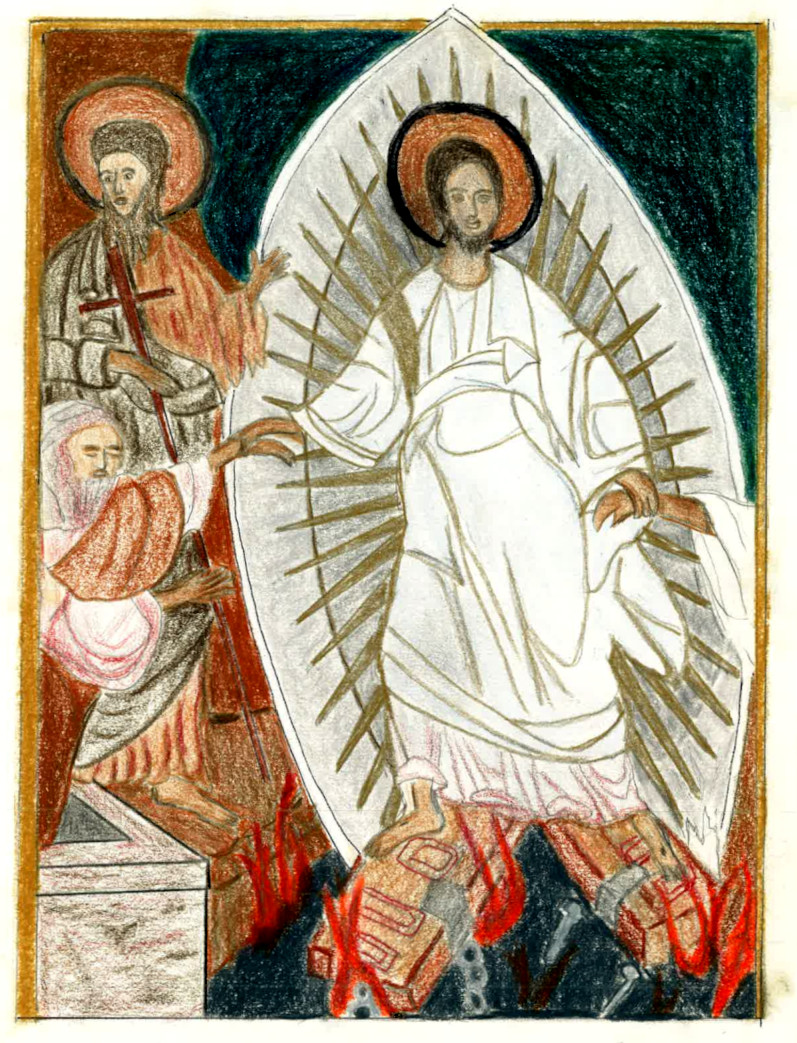Dans le thème de la Résurrection, ce qui m’est le plus cher, c’est le moment où Jésus vient libérer les morts des enfers.