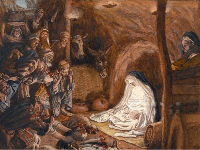 - James Tissot, Brooklyn Museum, c.1886-1894. Tissot est un artiste français qui a vécu en Terre Sainte et qui a peint beaucoup de scènes des Évangiles, en étant attentif au contexte et aux lieux. Ici, les bergers sont très expressifs.