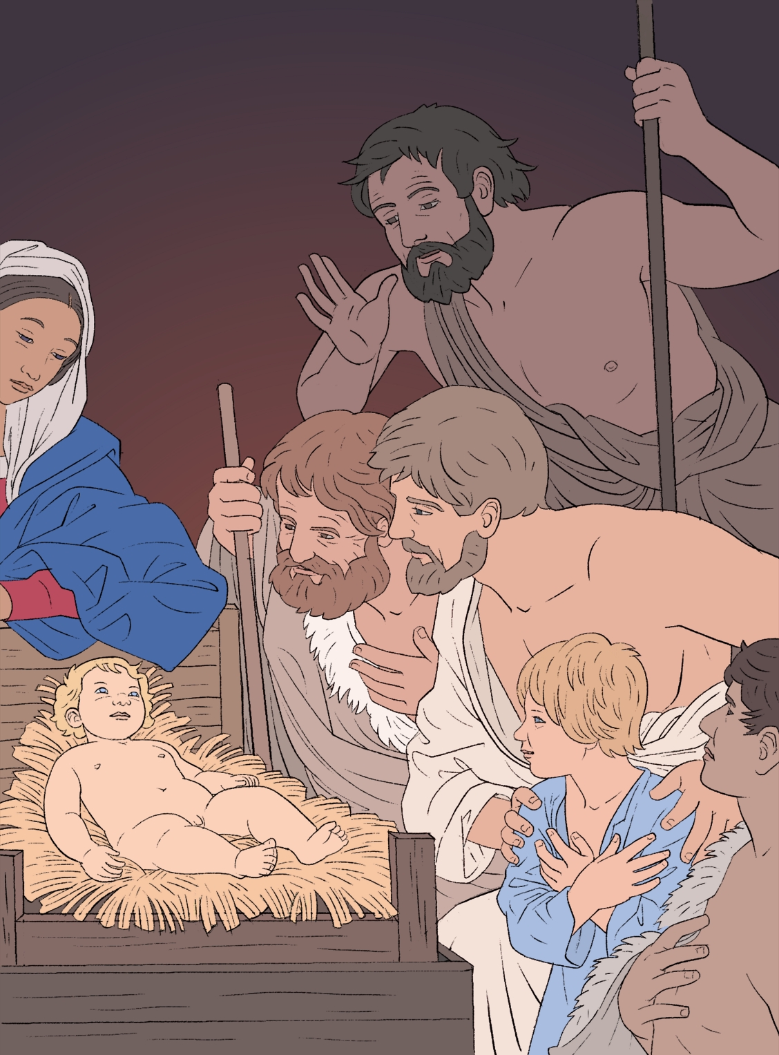 Nous sommes invités à vivre de l’intérieur la scène des bergers qui découvrent Jésus.