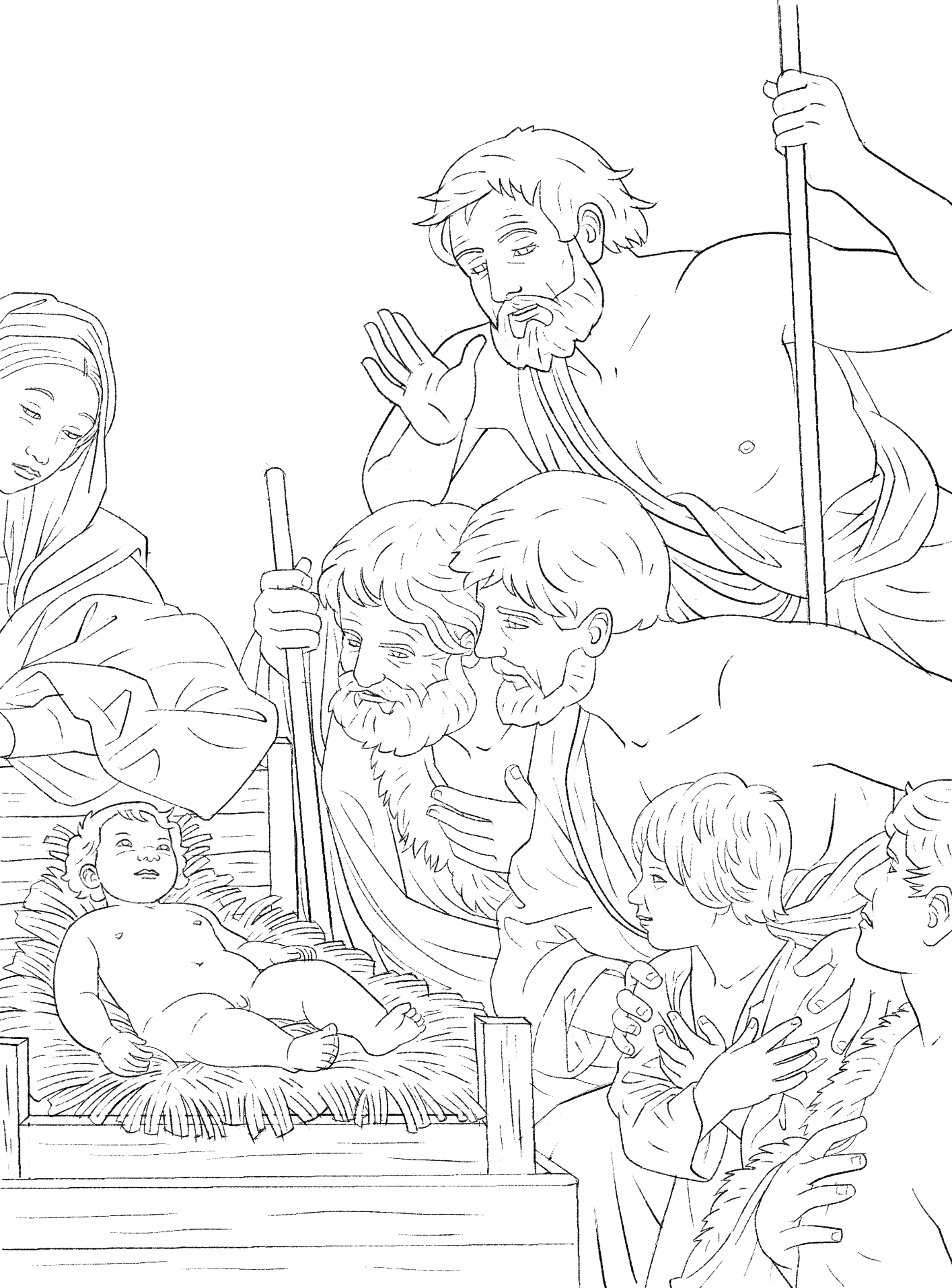 Vous pouvez utiliser une des images publiées dans cet article comme source d’inspiration, ou consulter les nombreuses images disponibles sur Internet sur le thème « l’adoration des bergers », ou encore imprimer les modèles simplifiés ci-dessous pour les tracer et les colorier.