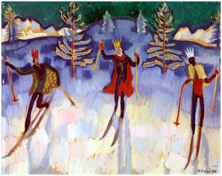 - Les rois mages skieurs, Heinrich Danioth, 1921, Suisse. Ce peintre suisse allemand nous montre les trois mages, couronnés et diversifiés, dans un décor de montagne, descendant allégrement la côte en skis. Rien ne les arrête. Image très rafraîchissante!