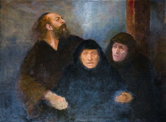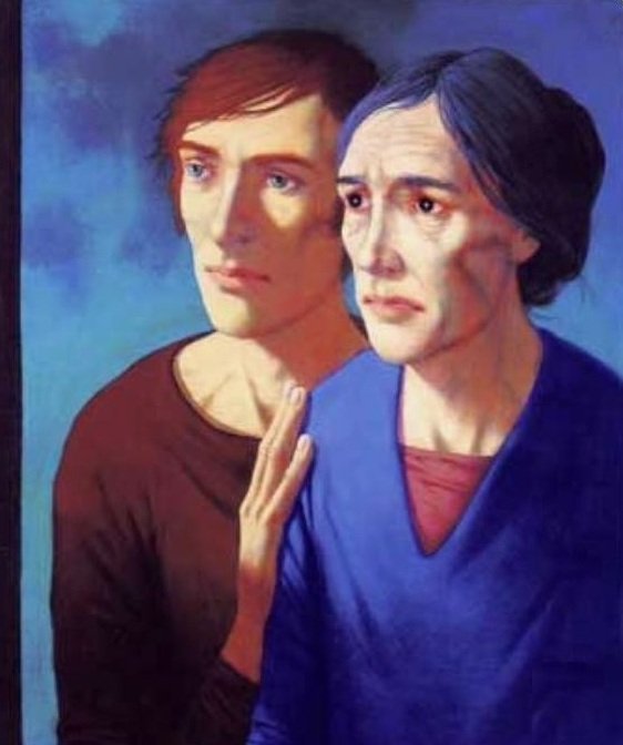 - Michel Ciry, c.1960-1970, Musée Michel Ciry, Varangeville-sur-Mer, Normandie, France. Ce peintre-graveur était aussi compositeur de musique et écrivain. Son art est attentif à ce que vivent les personnes, figures solitaires et en quête. La mère et le disciple sont tournés vers Jésus, attristés mais proches l’un de l’autre. Une lumière les couvre.