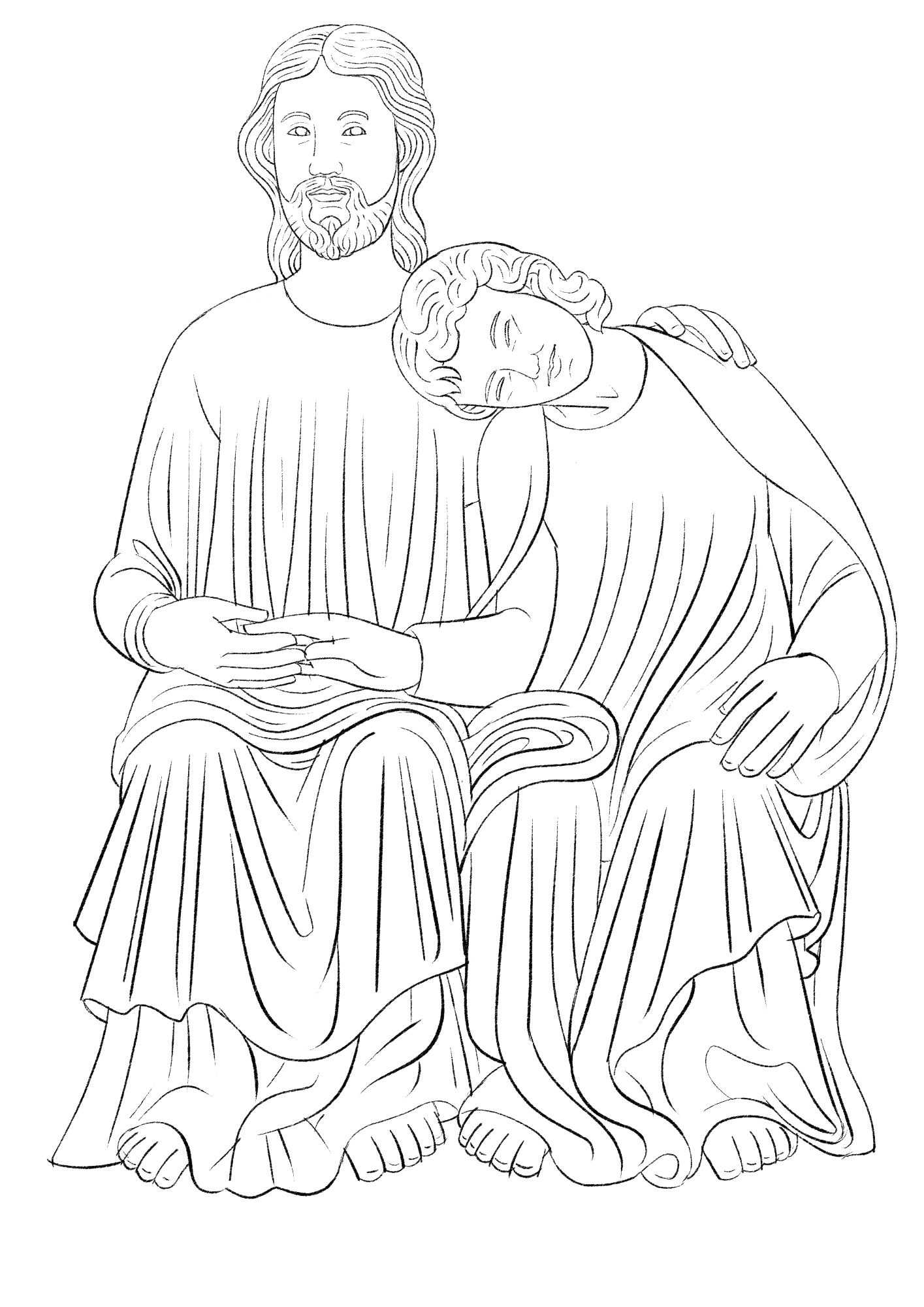 De même que Pierre a des traits reconnaissables dans l’iconographie (cf. chronique antérieure), le disciple bien-aimé lui aussi est bien campé. Son trait principal est clair : il est jeune. Pourquoi? Dans la finale de l’Évangile de Jean (21,20-23), une longue vie lui est attribuée. La tradition a identifié ce disciple à l’apôtre Jean, considéré comme ayant vécu longtemps, jusqu’à la fin du premier siècle. Donc, au moment de devenir disciple de Jésus, il devait être jeune! On lui donne souvent des traits fins, un visage imberbe, des cheveux longs, pour indiquer non seulement sa jeunesse mais aussi la sensibilité spirituelle et l’esprit perspicace propres au disciple bien-aimé en Jean. Ce qui est très différent de l’image, à première vue plus brutale et obtuse, qui ressort de la figure de Jean, frère de Jacques, fils du tonnerre, dans les évangiles synoptiques (Lc 9,49.54).