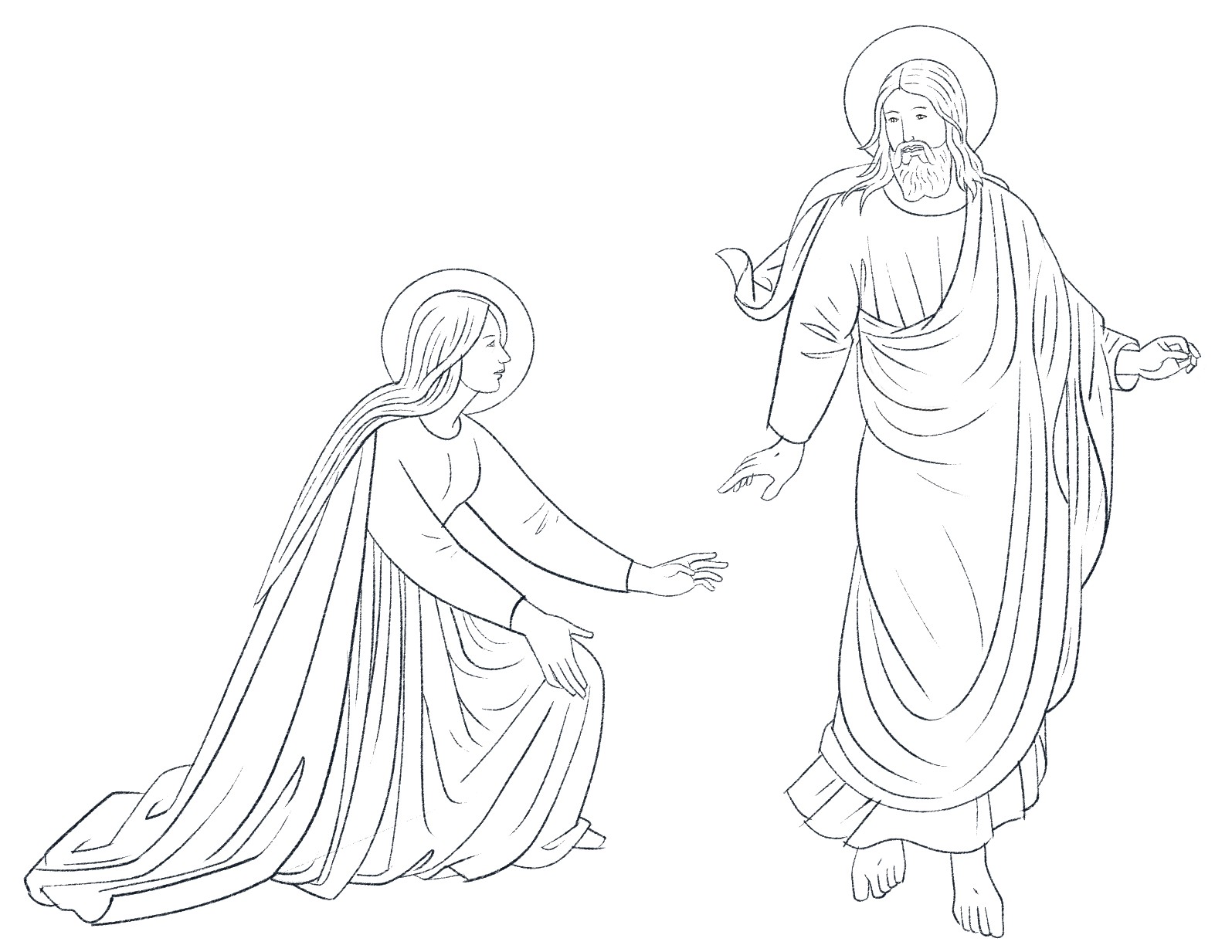 Tracés simplifiés à tracer et à colorier, librement inspirés de peintures traditionnelles de l’art chrétien. Cliquer sur les images pour les agrandir et les sauvegarder!
