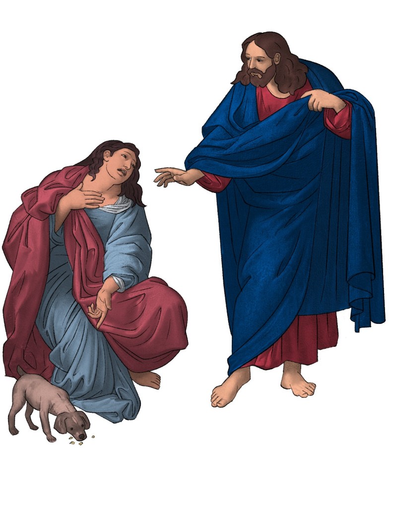 Jésus répond en articulant encore plus nettement sa position. Sa réponse peut nous choquer. Mais l’image des enfants et des petits chiens exprime une distinction courante, pour un juif de ce temps, entre les enfants, ceux qui appartiennent au peuple de Dieu, et les autres, les païens. Pour les Juifs de l’époque, les chiens étaient vus comme des animaux non-domestiques, ne vivant pas dans la maison, comme des étrangers.
