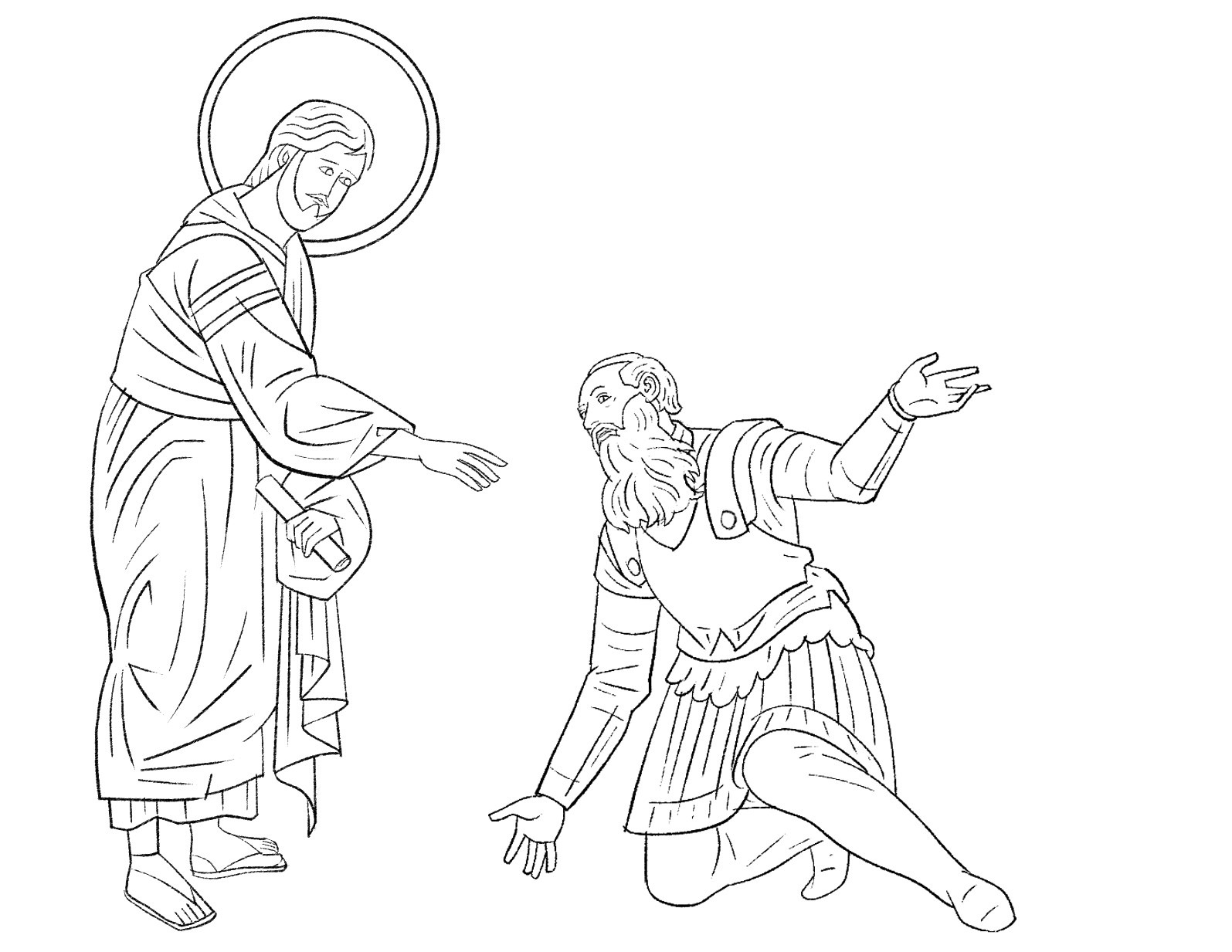 Ci-dessous un dessin simplifié à tracer et à colorier, un montage librement inspiré d’images traditionnelles chrétiennes.