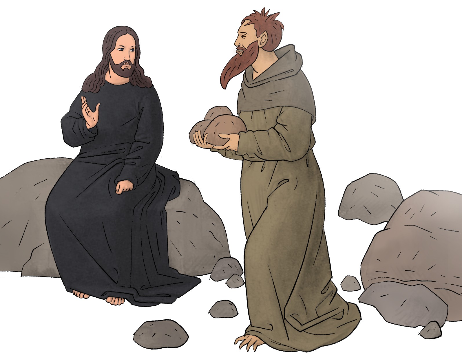 03 Le tentateur s’approcha et lui dit : « Si tu es Fils de Dieu, ordonne que ces pierres deviennent des pains. »