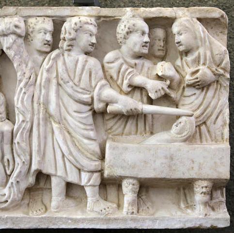 - Sarcophage de marbre, c.300-330, Musée du Vatican. Sur ces sarcophages de défunts chrétiens, des scènes bibliques étaient sculptées pour les accompagner dans leur passage. Avec les fresques, elles forment les plus anciennes œuvres de l’art chrétien. Ici, comme dans les autres, Jésus est un jeune homme; le fils de la veuve est très petit! Comme pour la fille de Jaïre, Jésus redonne vie au fils en le touchant avec un bâton, qui est signe de son autorité. Il regarde la veuve devant lui. Des disciples l’accompagnent.