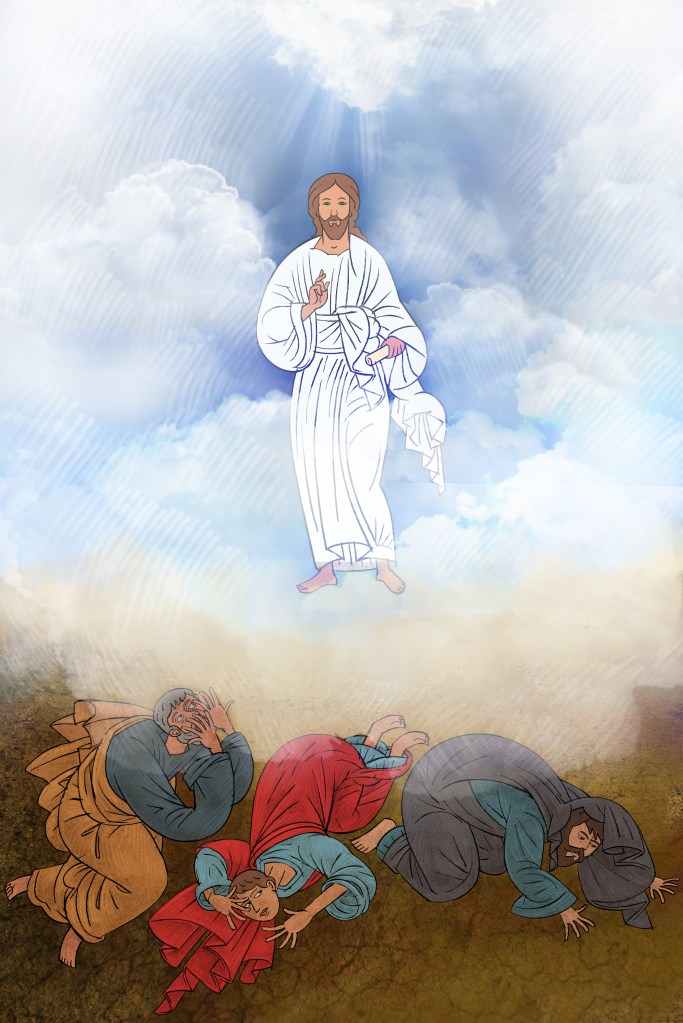 Jésus prend les trois disciples plus proches de lui, Pierre, Jacques et Jean (et non Pierre-Jean-Jacques, selon l’expression fréquente!) et les emmène sur la montagne. Ils peuvent alors saisir un peu plus que Jésus est vraiment l’envoyé de Dieu, en qui sa puissance et sa gloire sont présents. À noter: ce sont ses disciples les plus intimes qui ont accès à ce visage lumineux de Jésus, ceux qui l’accompagnent à des moments privilégiés (Mc 5,37; 14,33), qui sont nommés les premiers dans le choix des Douze sur la montagne (3, 13-17). Comme si l’intimité avec Jésus nous faisait entrer plus profondément dans son identité, nous aidait à l’entrevoir, même un instant. Ils en sont d’ailleurs bouleversés, ils ne savent que dire. Souvent en Marc les disciples ne saisissent pas, ils sont dépassés (6, 51-52; 8, 17-18). Et ici, ils aimeraient aussi s’installer en ce lieu (dressons trois tentes) qui est plus rassurant que les défis et conflits de la plaine. À la fin, ils s’interrogent : ressusciter d’entre les morts, de quoi parle-t-il? C’est pour la fin des temps…