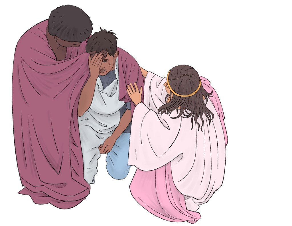 « Je suis rentré à moitié nu devant mon père, les vêtements déchirés, sans rien à manger ou affamé, les os qui se voyaient ou maigre ou squelettique , il me tient dans ses bras, je lui dit : « J’ai besoin de toi, j’ai besoin de toi ! ». Il ne dit rien, je pleure dans ses bras. En pleurant, il dit : « Mon fils est de retour, mon fils est revenu ». Il me tient, il me rassure.