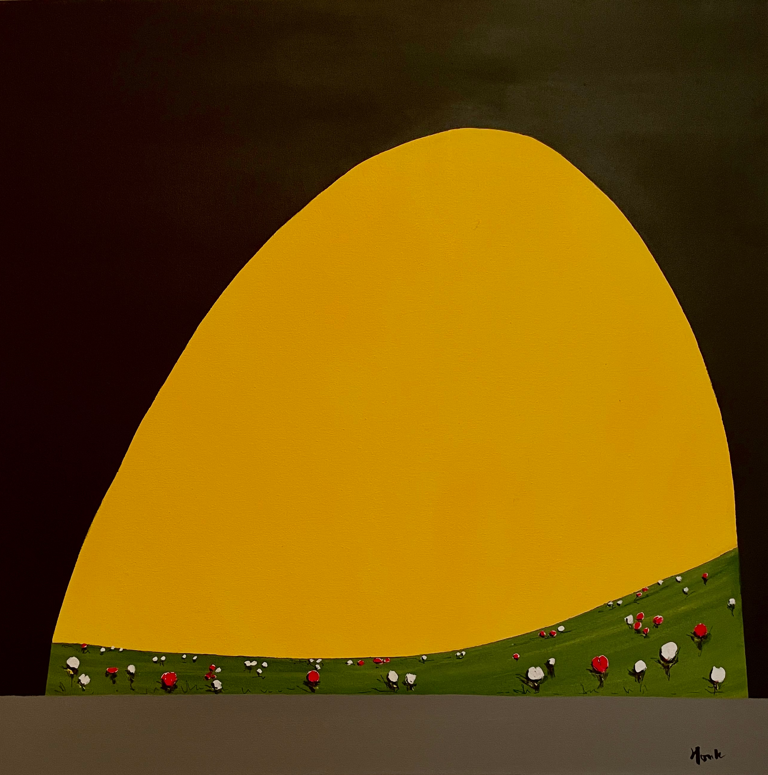 Ce n’est pas en restant prostré dans le noir du tombeau que le Ressuscité se donne à voir, c’est en sortant vers la lumière, ce que le jaune dominant de la toile veut évoquer. Il y a aussi ce vert tapissé de fleur, celui de la verte Galilée au climat agréable, au sol riche et aux ressources végétales abondantes. La riante Galilée! C’est là que Jésus Ressuscité donne rendez-vous. Là où il y a la vie, où il y a ceux qui croient à la vie et qui engagent le combat pour la sauver.