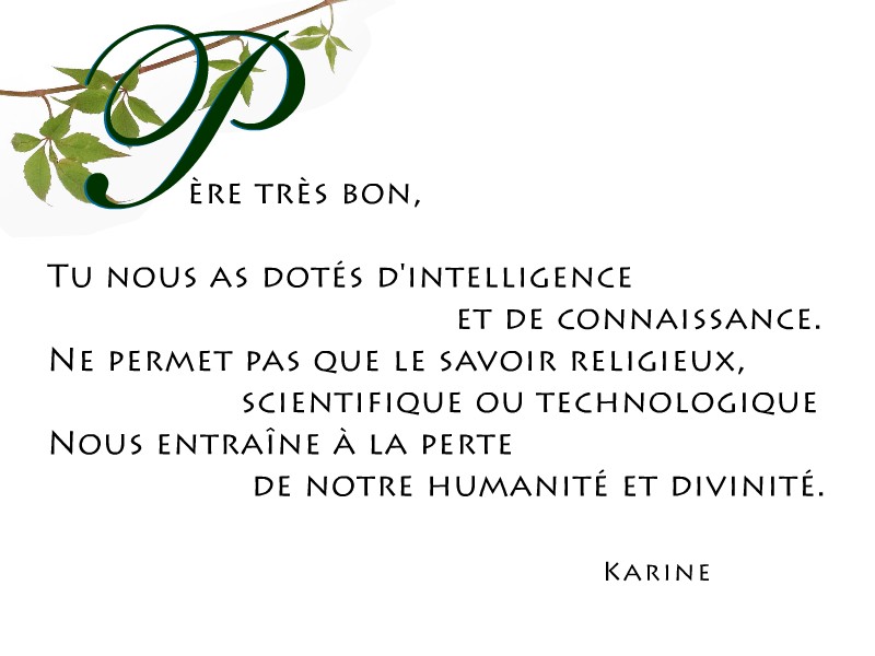 Stp, donne-nous Seigneur de reconnaître en nous la force de ces jugements, et surtout de ne pas les laisser faire de nous des porteurs de mort, mais plutôt de chercher à te louer, parce que tu es bon. Stp donne-moi, donne-nous d’être porteurs de Vie !